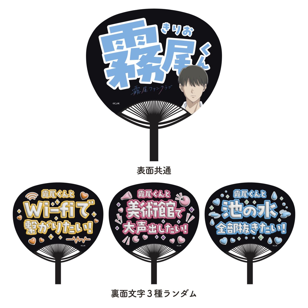 事後通販で「TVアニメ「霧尾ファンクラブ」キャストトークつき先行上映会」グッズを3,000円(税込)ご購入ごとに【霧尾くん応援うちわ(裏面文字3種ランダム)黒ver.】を1点プレゼント!